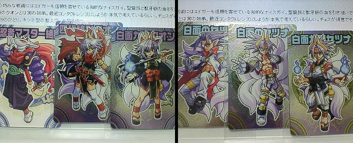 行って買ってきた さぁウエハー地獄の始まりだ!! 【今回GETしたカード】 No.090 ナインテールK、No.091 ナインテールS、No.092 天魁星マルス No.093 機界神オリオン、No.095 マッコイナス、No.096 ジャマケン No.097 ボボークン、No.100 光龍神リュウガ、No.101 破壊神デストール No.102 羅刹王ラズリード、No.105 戦神将アムニスタ、No.108 武神将ヘルマティオ No.110 砲煙のスナイピア、No.112 メタボル、No.113 バルダ・リオン No.114 創造神クリエール、No.115 天使長リムリエル、No.116 キクエル No.117 タキエル、No.118 パルテ・モコナ 以上! 今回の女性キャラはいつにも増して媚媚だね! 特にアムニスタとヘルマティオが 絶望した!創造神クリエールの露出度がほぼ0になっていて絶望した!! あと今回はクオンとセツナが復活とのことでメッチャうれしいね! ちなみにこれらが今までのクオンとセツナのカード さーて!今回はどんな感じなのかなー!? ・・・・・・・・・・え?誰この変態マスクっぷり PR
