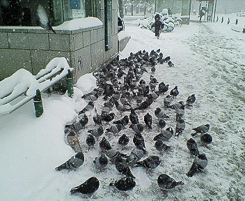 いつものゲーセンに到着、さっそくアイマス台の元へ直行・・・ あれ?おかしいな・・・アイマス台が見当たらない・・・移動された? とゲーセン内をウロウロすること数分・・・ あった・・・ あったけど・・・なんで脳トレになってるんじゃ!? アイマス台が撤去され「みんなで鍛える全脳トレーニング」というゲームに変わってたよ・・・ うう・・・Aランク入りでもう少しで引退ライブだったのに・・・ ナムコワンダーランドなんだからアイマスは残してくれてもいいじゃない! というわけで、今度からは結構遠い所にあるゲーセンまで行かなきゃアイマスを プレイできないということになったとさ・・・ [おまけ] 歩いてたら雪の寒さに凍える鳩が集まってたんで撮影 |