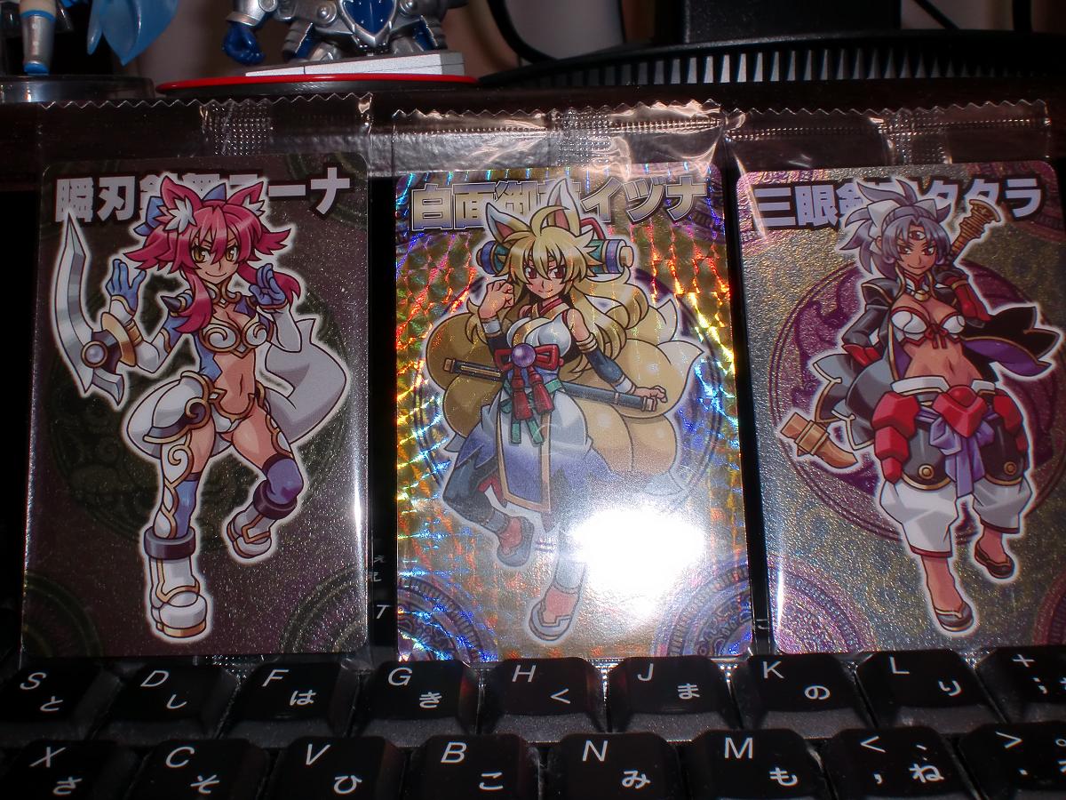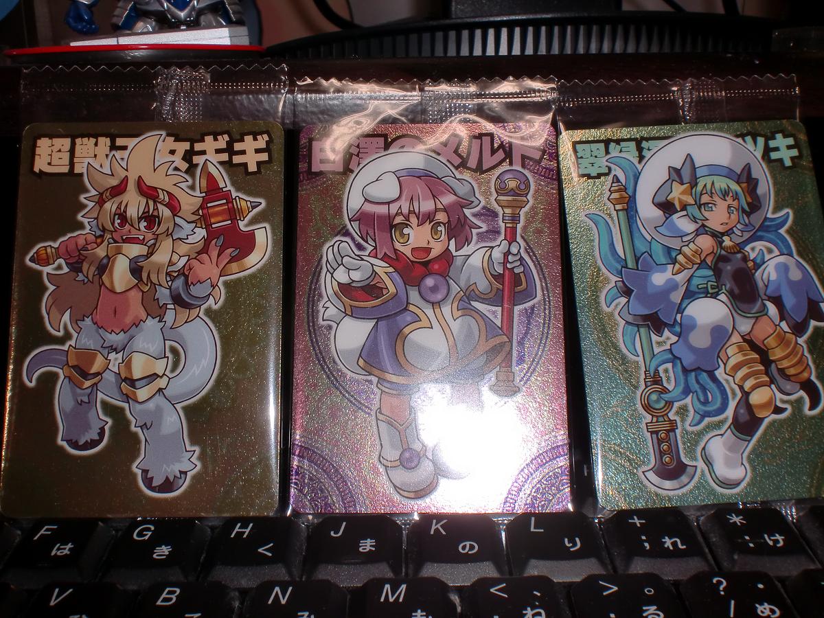 ついこの間、ゼクスファクターが完結したと思いきや、あっという間に 次弾新章である「七天の覇者」が発売していました 一応ZFから数年後っぽい話なのね~ イヅナが人妻とかエロ過ぎる・・・ とりあえずいつものとおり、今回当たったカードをさらさらと PR 魂獣大帝ゼノン 01 白面のサイ 02 白面御前イヅナ 03 三眼剣匠タタラ 05 ギロちん 06 煌天騎士ルーグ 09 狸将軍タケチヨ 10 白面童子サイ (通常・ホロ両方) 11 白澤のメルト 12 轟雷騎竜ボルト 13 瞬刃剣舞ユーナ 14 紅蓮弓聖ロック 15 翠緑深王ミツキ 16 灰熊竜グリズラー 17 電装機クラーゲン 18 疾風武人ナルニード 19 迅雷忍者コウライ 20 砂漠王リーボック 21 刃夢星ハムラット 22 熱風鳥人ヒューガ 23 占星鬼女イベリィ 24 零凍機アレイザー 25 蠍元帥スコピノス 26 超獣王女ギギ 27 黄玉輝星アガート 28 わんぱくグリリン 29 熱狂暴徒ガバル 30 ひやかしノイジー 31 売り子のウリコン (覚醒) 白面火炎童子サイ (覚醒) 煌天騎神ルーグ (覚醒) 黒刀斬姫ムジナ 今回、チャンスカードとノーマルカードが同じ絵柄の癖に別モノとしてあるから困る・・・ ノーマルVerが欲しいときに限って何で毎回チャンスカード当たるのさー! ・・・おねがいだからチャンスカードはもっと別の方法で封入おねがいしたい・・・ 今回から始まったチャンスカードシステムで当たるカードは サイの最終覚醒ver以外は手に入りました ムジナちゃん、ちょっとモリマンすぎやしませんか!?スジすぎやしませんか!? それにしてもムジナちゃん通常形態verカードが手に入らない・・・ 今回はムジナちゃんとデヒテラさん以外の女性キャラカードは手に入りました ぅゎ 人妻イヅナえろすぎる・・・ やっぱ旦那さんはカイか!?カイなのかー!? あとメルトって男の子だったのね・・・ こんな可愛い子がついてないわけg(ry ・ ・ とりあえず、ムジナちゃんとデヒテラさんのカードさえ手に入れば満足するので、 ちょくちょく買い続けてみようかと思っています。 PR |