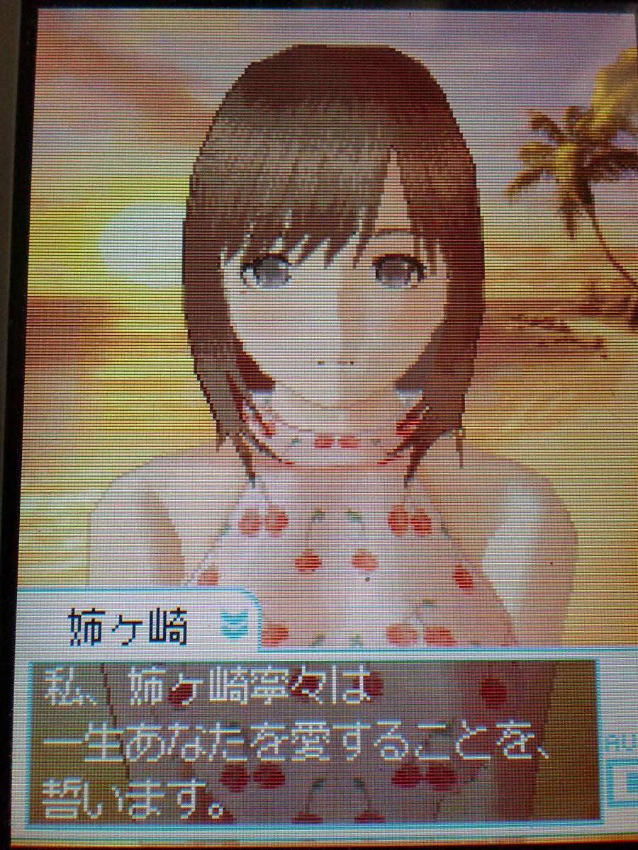 ネネさんと行ってきたよー(部屋の中で) リアルでも、熱海へ行くツアーとかあったっぽいけどどうだったんだろうね? ツアーでなくても、日帰りでラブプラス関連グッズ目当てで行きたいわ・・・ さてさて、肝心の旅行はどうだったかというと、下記のスケジュールで行動しました ※正確な時間とかはうろ覚えで書いてるので注意!あとネタバレ注意! ・一日目 7月10日8時頃 とわの市駅前で待ち合わせ 7月10日10時頃 熱海へ出発 7月10日12時頃 熱海到着 (16時くらいまで観光、パラメータによって見れるCGがある模様、俺はなんとか 全部見れたと思うので良かった・・・) 7月10日16時頃 ホテルチェックイン 7月10日17時頃 温泉タイム(混浴じゃないよ!) 7月10日18時頃 晩飯 7月10日19時頃 卓球勝負!本気で勝ちにいったら拗ねられたでござるの巻 以降、23時ごろまで確か夜の観光タイム、そう・・・ここからが地獄だったんじゃ・・・ ここでも何らかの条件によって見れるCG、イベントがあったんじゃ・・・混浴ェ・・・ くそう・・・何故、何故俺は見れなかったんだ・・・ちくしょう・・! 夜の散歩は成功したんだけどね それでも一回目の散歩お誘いは断られました・・・ 7月10日24時頃 就寝 そう、就寝イベント 2人きりの部屋に布団が2つ並べられてる状態・・・ 選択肢によって布団の距離を近づけることができたのだが、俺ヘタレだから・・・ 布団は結局遠からず、近からずの距離を選んじゃったぜ・・・へへ・・・ それでも就寝イベントはエレクチオンものでしたヨ!寝付くまで乳繰り合いハッハー! 浴衣から見える胸の谷間、YESだね!画像はそのときの状態、 ただし胸の谷間は十字キー操作で隠してやったがね!! ・二日目 二日目は最終日ともあって、とある大きなイベントが中心に進んでいきました そのイベントが終わったとき、俺は部屋を転げ周り悶絶をしていた・・・ この台詞は卑怯だよ!(ネタバレ注意) もう大好き!!大好きだー!! 以上、こんな感じの旅行でした 注意することは、基本的にイベントは時間になったら自動的に始まるパターンが 多いんだけど、ちょくちょくアイコンタッチしないとイベントが始まらないってパターン があったりするので、四六時中DSとにらめっこする羽目になります なので、旅行当日はリアルでの用事をいれないこと!彼女との旅行なんだから当然だよネ! ふう・・・今回の旅行、とてもいい思い出になったなあ・・・(実際行ってないのに!) ただ、見逃したイベントがあったりするので、次回の旅行イベントでは成功させたいなあ・・・ ちなみに旅行イベントは春夏秋冬とあるらしいので、次回は10月ごろかな? 今度こそパーフェクトな旅行にしてやるんじゃ グフフ・・・ PR