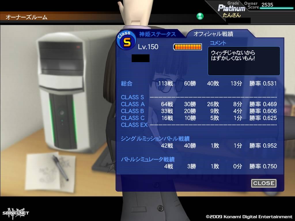その間Sランク神姫入りしたのは1体だけだったのに・・・ まず今年入って最初にSランク入りした飛鳥さん あと一敗でEX落ちというところで、奇跡の3連勝でSランク入り 凄い冷や冷やしましたよホント! 能力的には典型的な回避型で、武装も下記のとおり 1.和風コーディネート近接装備(飛燕とセブンスエッジがメインウエポン) 2.料理コーディネート近接装備(ネギ二刀流と銀ナイフがメインウエポン) 3.$子さん装備ミリタリー近接装備(スネークソード二刀流がメインウエポン) 4.超機動近接装備(スネークソードと疾風雷神がメインウエポン) 主に水中戦で勝率上げることが出来たなぁ、$子装備強い! そして本日Sランク入りしたむーちゃん こちらもあと一敗でEX落ちだったところを、奇跡の5連勝でSランク入り ほんと心臓に悪いよ・・・ 能力的には命中高めの回避型で、武装は以下のとおり 1.アイ子様装備(ソング・フォーユーの運任せ、殆ど利用しなかった・・・) 2.メカコーディネート近接装備(ブーメランサイズでゴリ押し) 3.$子さん装備ミリタリー近接装備(砲子拳銃二丁がメインウエポン) 4.超機動近接装備(ディヴァインバs・・星槍レゴールがメインウエポン) 奇跡の5連勝は星槍スキル様様だったなー・・・相手が全員スナパ型だったおかげもあるが しかしホントよかった!特にむーちゃんのSランク入り! どうしてもこの抱き枕が欲しかったんじゃよ! 能力的にはそれほど強くなさそうだったけど、 まぁ、問題なし! あー・・・コナスタで商品化されねーかなー・・・ PR